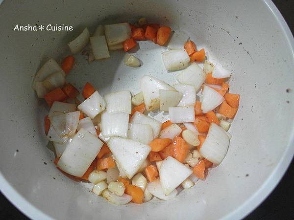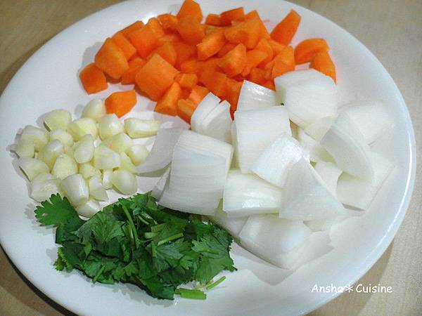 2.紅蘿蔔、馬鈴薯、洋蔥通通切成小塊