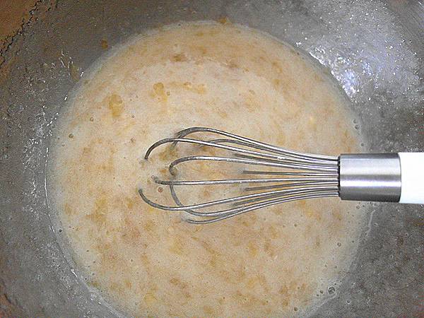 1.香蕉加糖打成蓬鬆泥狀