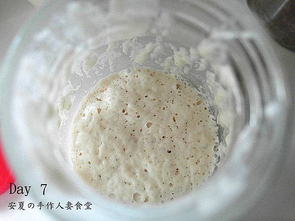 第7天:一般網路上分享就只到這個(原種)的階段,可以直接使用,用量約麵粉的1/4,冷藏只可保存一星期,要保存更久就要做成粉狀,拿一個透明塑膠袋,整個攤開,把酵母種塗上薄薄一層,放置通風處風乾24小時(不能曬太陽)