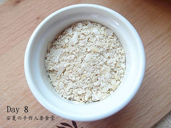 第8天:風乾後捏碎用調理機磨細完成囉!不用磨很細沒關係,密封放冷藏約可保存半年喔!