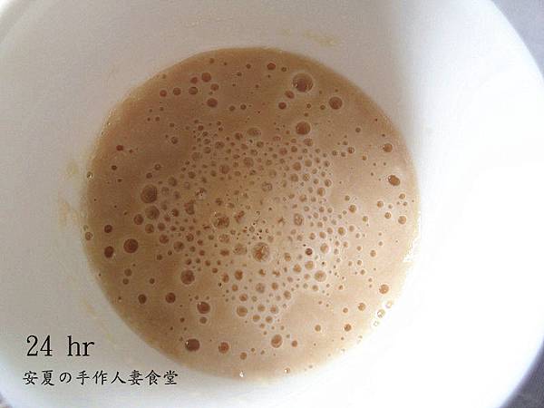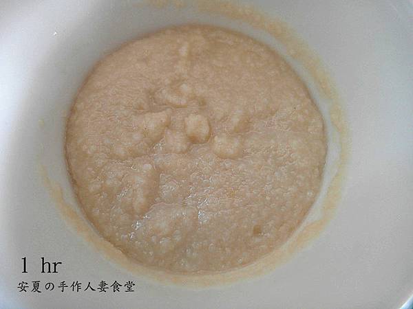 2小匙蘋果酵母粉 + 1大匙水 + 麵粉15g 攪拌均勻後蓋上保鮮膜發酵,夏天24~30小時