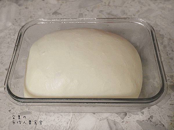 1.麵粉+奶粉+糖+鹽+酵母+牛奶+蛋揉均勻,再加入奶油揉至光滑不黏手後,進行第一次發酵製麵團變2倍大