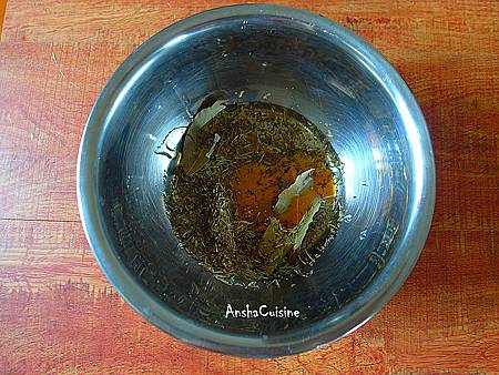 2.把義大利香料,迷迭香,月桂葉,蜂蜜,橄欖油混合