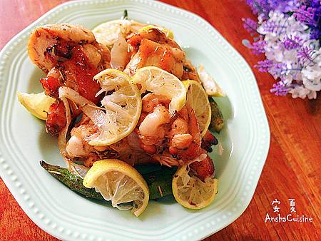 6.烤熟後加入切片檸檬和海鹽混和一下就完成囉!