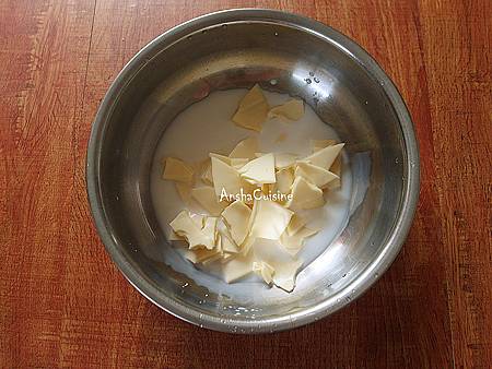 2.起司片撕小塊+牛奶B,用瓦斯爐小火煮溶化