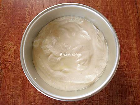 5.和剛剛的麵糊輕快的混合,放入烤模(我是放8寸,應該要放6寸的剛剛好)