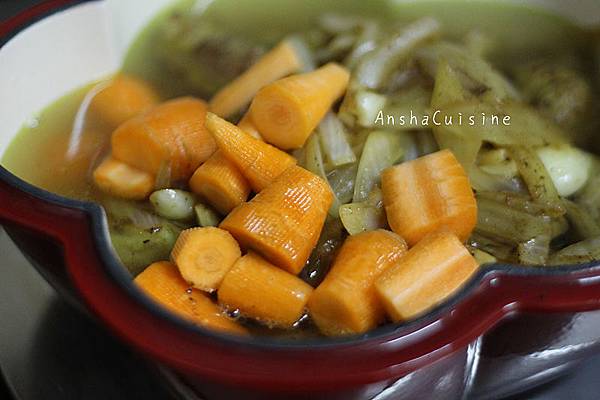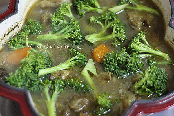 把肉燉爛後,加入綠花椰不加鍋蓋,煮5分鐘
