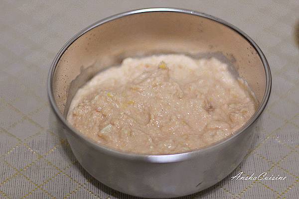 3。腰果壓碎,番茄切塊,用果汁機打成泥放冰箱備用