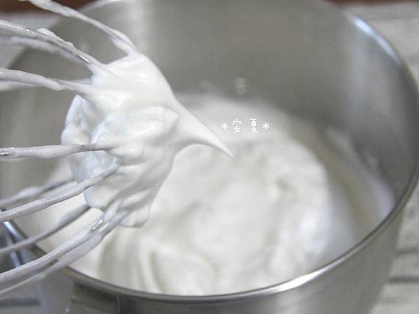 3顆蛋白打勻後加入細糖打發至有小彎鉤