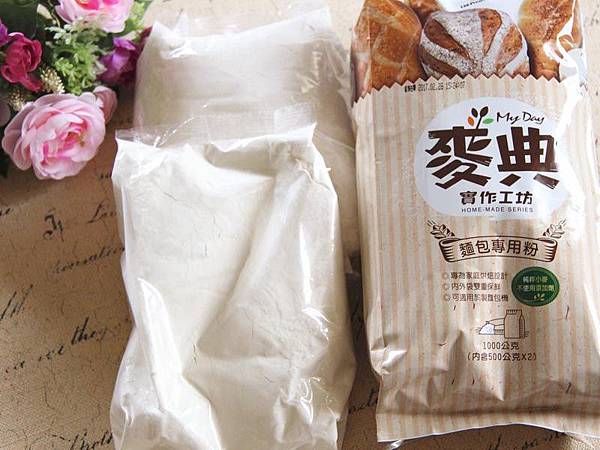 本次使用麥典實作工坊麵包專用粉,麵粉滿有特色的: 1. 麵粉質地細緻 2. 純粹小麥,沒有其他的添加物 麵粉本身細緻,利用這個優點,做出的泡芙皮可以有酥脆的口感!非常適合喔~