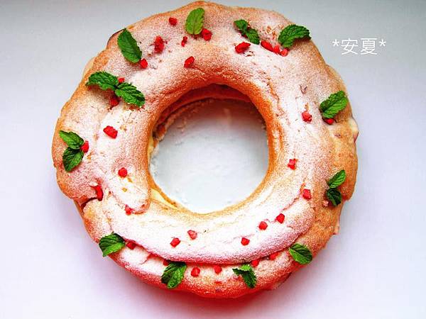 蓋上另一半的餅皮,灑上糖粉,堅果或果乾,用薄荷葉裝飾就完成囉!無論是下午茶還是野餐,與家人、朋友一起吃著可愛的巴黎圈,非常享受喲~:)