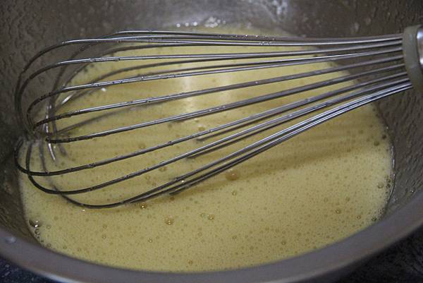 最後加入溶化的奶油混和,放入冰箱靜置一晚