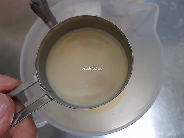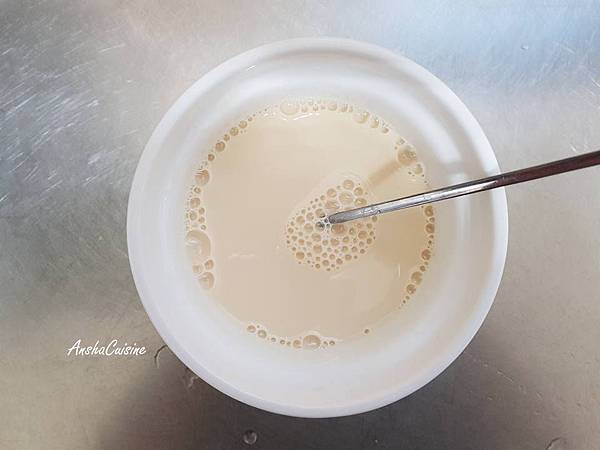 鮮奶加熱,加入糖攪拌至融化後倒入鮮奶油