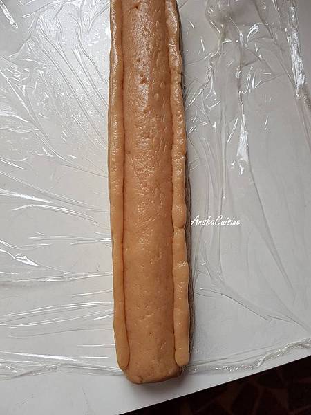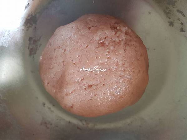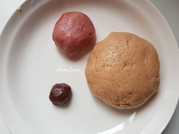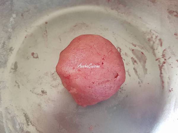 其餘麵糰加入覆盆莓粉調成粉色(約2~3g)