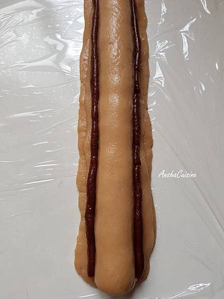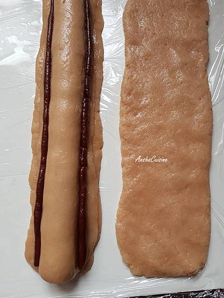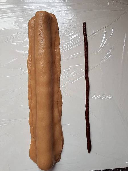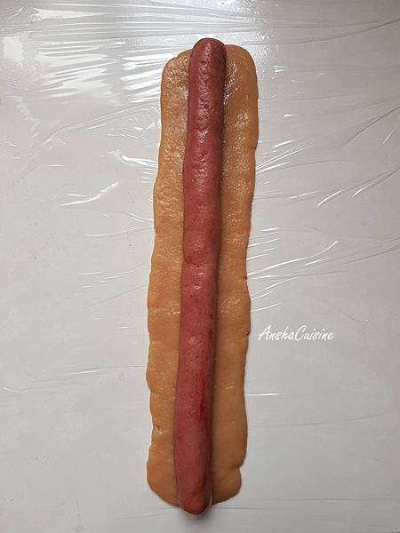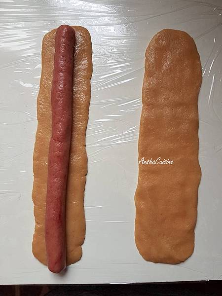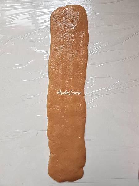 取20g麵糰等等當耳朵,其餘的麵糰壓平