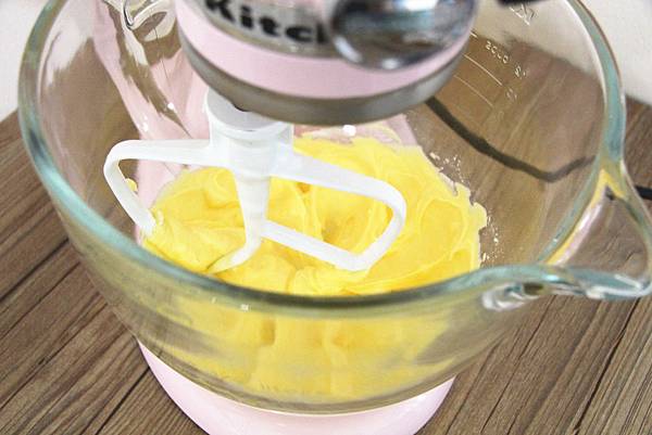 全程使用1段變塑即可,先將奶油攪拌開來,幾秒鐘即可