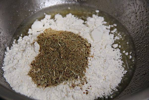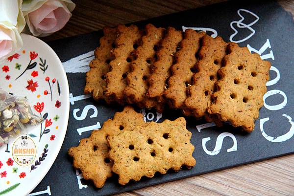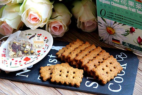 這次使用有機洋甘菊花果茶,磨成粉後加入餅乾裡面