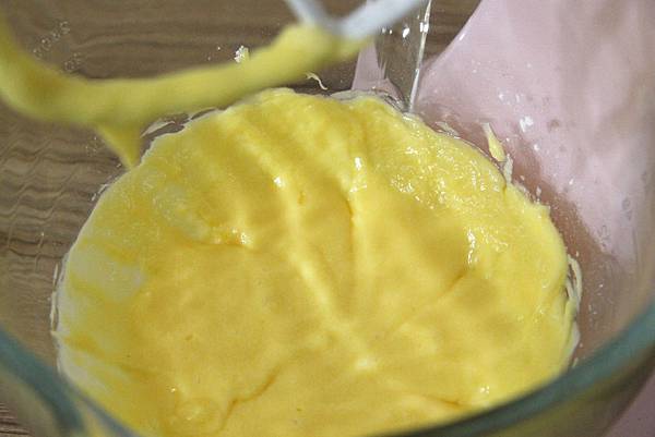再加入雞蛋中速攪拌至吸收