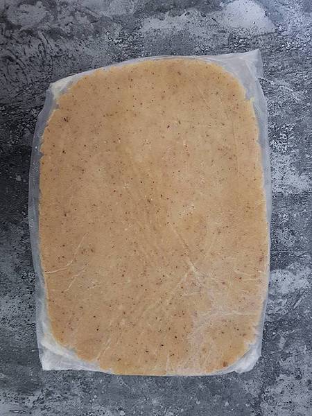 再加入麵粉和附盆莓粉攪拌成團後壓平